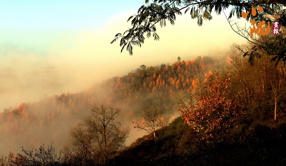 遠處的樹木被冬霜精心“染色”,墨綠、淺黃、緋紅層層疊疊,形成鮮明對比,共同繪成了一幅水彩畫。