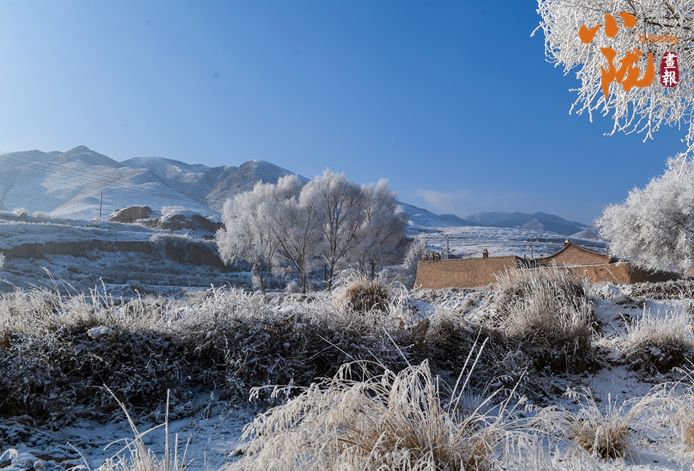 山下的屋舍靜臥于無邊的潔白中,淺藍(lán)天色漸次暈染,蒼灰山脊如墨筆勾勒,山川草木皆成了畫中疏淡的筆意,低訴著悠長(zhǎng)的冬韻。