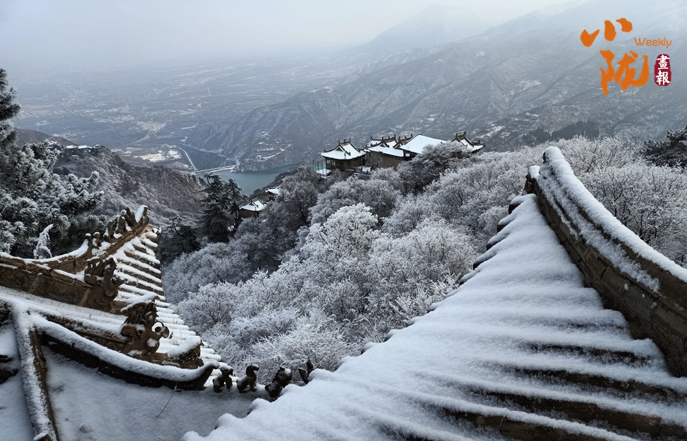雪,為“西來第一山”披上了一襲亙古的素衣。舉目望去,朱紅的宮墻、青黑的瓦當,在白雪的映襯下,色彩格外鮮明莊重。
