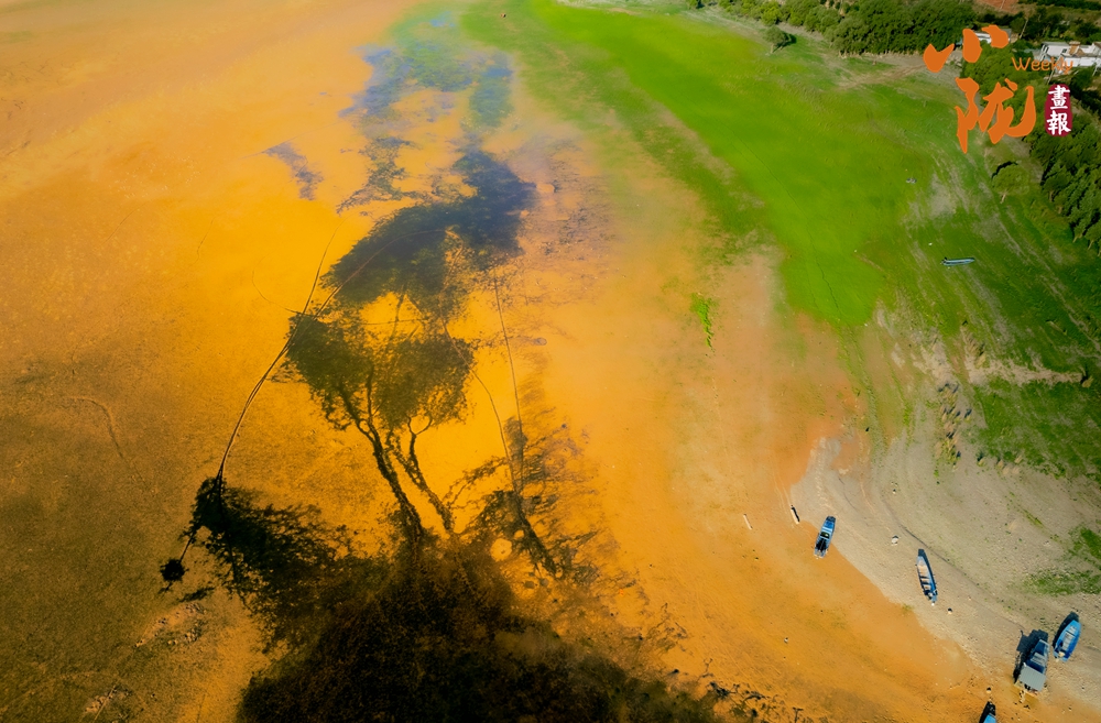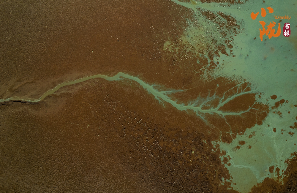 當(dāng)潮水收起它湛藍(lán)的裙擺,灘涂便褪去濕漉漉的偽裝,顯露出大地原始的紋理,恰似一幅細(xì)節(jié)豐盈的“山水畫卷”。