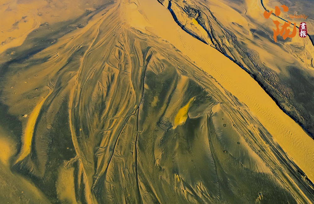 潮水褪去,灘涂勾勒出極似樹(shù)根分支的有機(jī)形態(tài)——主脈粗壯有力,次脈隨之伸展,末梢則細(xì)密如須根,整片灘面仿佛成為一棵倒生巨樹(shù)的根系拓印,靜默中透出磅礴的地質(zhì)美感。
