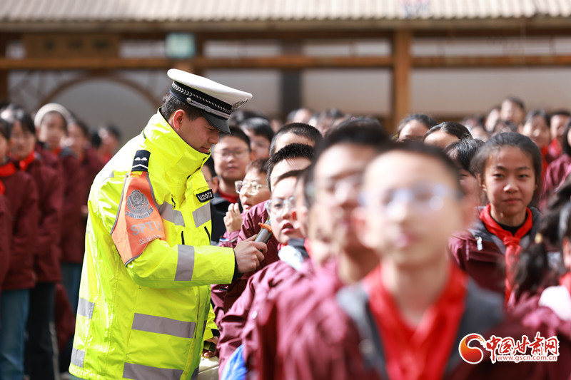 2月25日,蘭州市中小學(xué)開學(xué),學(xué)生們走進校園,開始新學(xué)期學(xué)習(xí)生活,蘭州市公安局交管支隊城關(guān)大隊輔警在城關(guān)區(qū)水車園小學(xué)民勤街分校,為學(xué)生們講解交通安全知識。