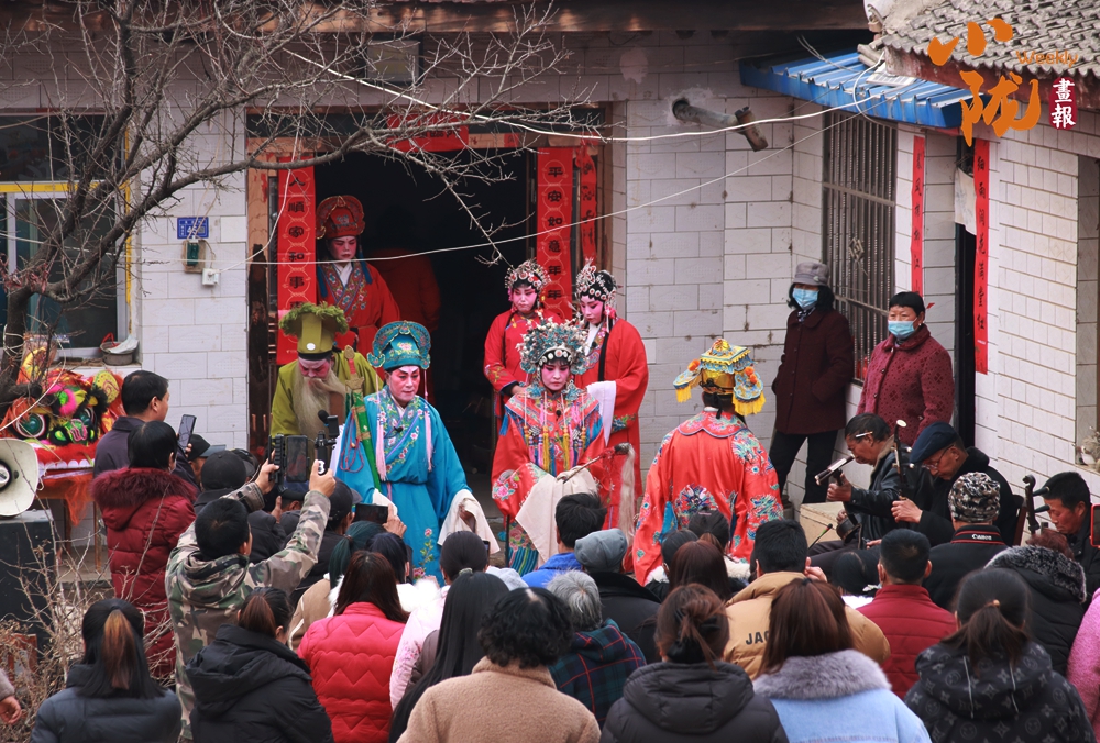 民居門口的舞臺上,多位扮相精致的演員依次亮相,或持扇或執(zhí)巾,唱腔婉轉(zhuǎn)、身段靈動。臺下村民圍得水泄不通,不少人舉著手機定格精彩瞬間,伴奏的鑼鼓弦樂聲里,滿是濃郁的鄉(xiāng)土氣息。
