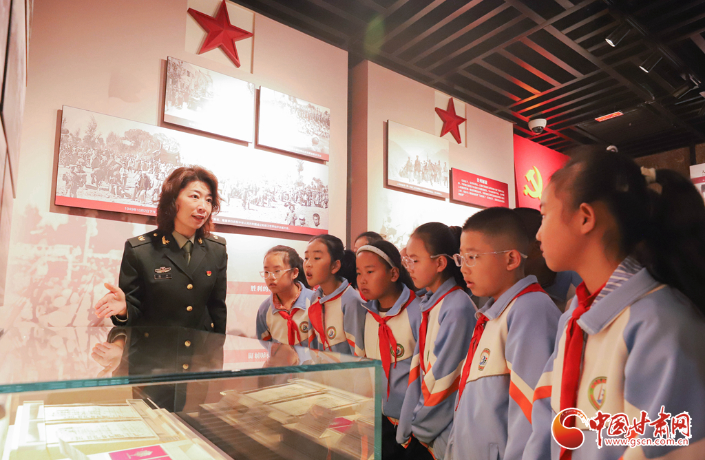 3月30日,高金城烈士紀(jì)念館內(nèi),張掖市甘州區(qū)北街小學(xué)的同學(xué)們正在聆聽講解員講述革命烈士的壯烈事跡。