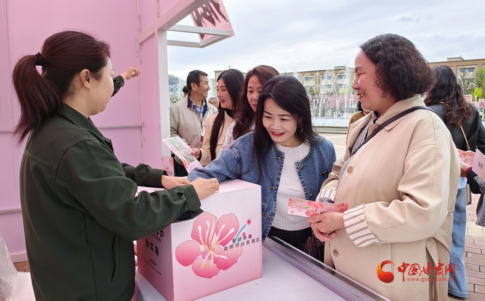 4月11日,在金徽酒文化廣場,游客正在參加看花識(shí)酒活動(dòng)。
