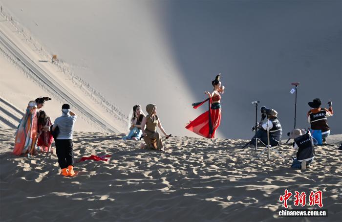 原標(biāo)題:甘肅敦煌鳴沙山下古風(fēng)服飾旅拍成“留量”